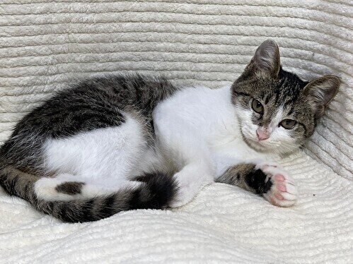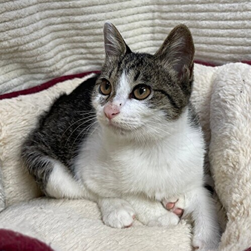 | 特徴(性格など) | 【仮名】ひよりちゃん 【性格】ちまっとまるっこいひよりちゃん☆ 近寄るとシャーとご挨拶いただきます('◇')ゞ でもシャーは言っても攻撃性はなくて 撫でればゴロゴロ喉を鳴らしたり お尻を持ち上げたり、へそ天になったり( ´∀` ) シャーではなくにゃ~~~ぁと言えるよう特訓中です(^-^; まだ人には緊張気味ですが 猫とはすぐに仲良くなりました。 深夜の運動会は率先して参加しています(#^ω^) 猫がいる環境の方が早く慣れると思いますので 同世代にゃんことペアか または先住猫さんのいるお家へのお迎えを希望しています♪ ※1匹譲渡不可 |