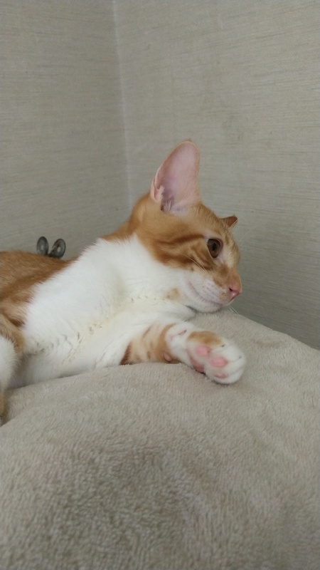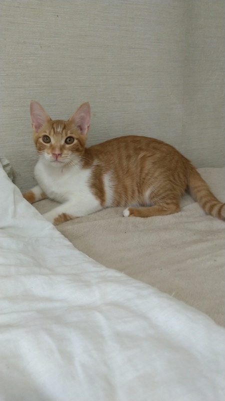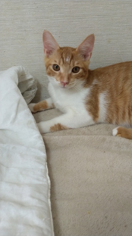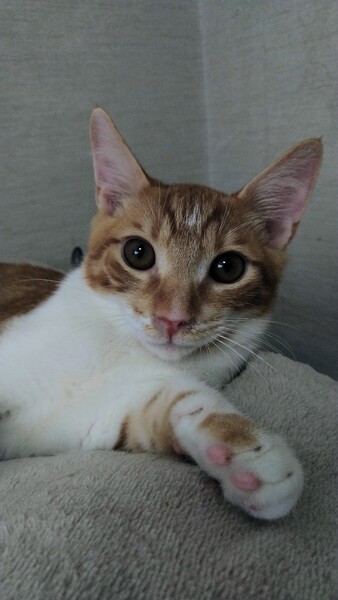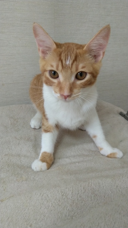 | 特徴(性格など) | 控えめでおとなしい性格です。 撫でてあげるとお腹をだして喜びます。 明るめの茶トラでお腹の白とのコントラスがとても爽やかです。 |