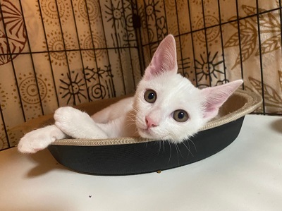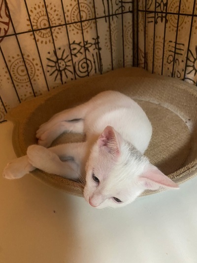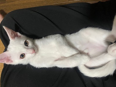 | 特徴(性格など) | レボリューション済 ワクチン近日接種予定 月齢よりも小さかったですが、しっかりとご飯も食べて、今はムチムチとしてます。 母猫たちも人馴れしているので、近日中に里親募集します。 白毛にうっすら黒毛を頭に乗せたのがチャームポイントです♥️ 人が大好きで、トコトコと後をついて来ます。 遊ぶのも食べるのも一生懸命‼️ 母猫とも仲良しで、皆から愛されて甘えん坊に育ちました。 |