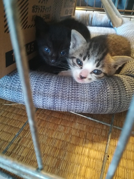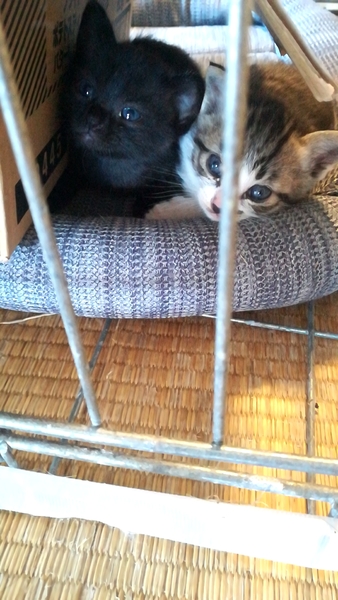 | 里親募集する理由 | 9月11日に発見しました。我が家の縁の下で野良猫が産んだようです。13日に捕獲できました。ぷっくり太っていて十分にお乳を飲んでいたんだと思いました。我が家は山の中に有るのですが、野良猫が多く、捕まえて去勢や避妊手術を繰り返しても追いつきません。 子猫は出来れば2匹同時に迎え入れてくれる里親さんを希望します。もちろん1匹でも有難いのですが、もしも2匹でというお申し出が有れば、そちらの方を優先させて頂こうと思います。それから静岡市では野良猫の去勢や避妊手術の助成を行っています。強制ではありませんが、里親さんには1匹につき1万円の「カンパ」をお願いしたいです。あくまでカンパのお願いなので、無理な場合はお申し出ください。 |
