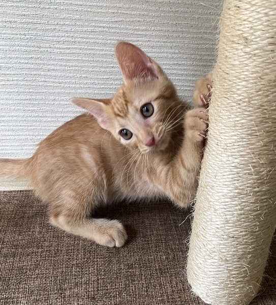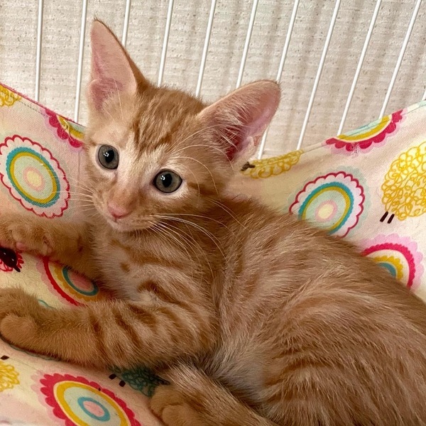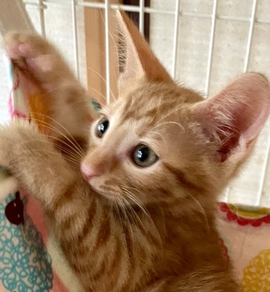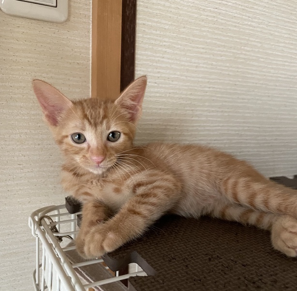 | 特徴(性格など) | 茶トラ 5兄妹子猫 ワクチン1回接種 ウイルス検査陰性(エイズ、白血病) 避妊去勢手術未 薄〜いお顔で、なんとも愛嬌があります。 よく寝てよく遊び膝の上で一人遊びしたり。 撫でると尻尾を上げてご機嫌です |