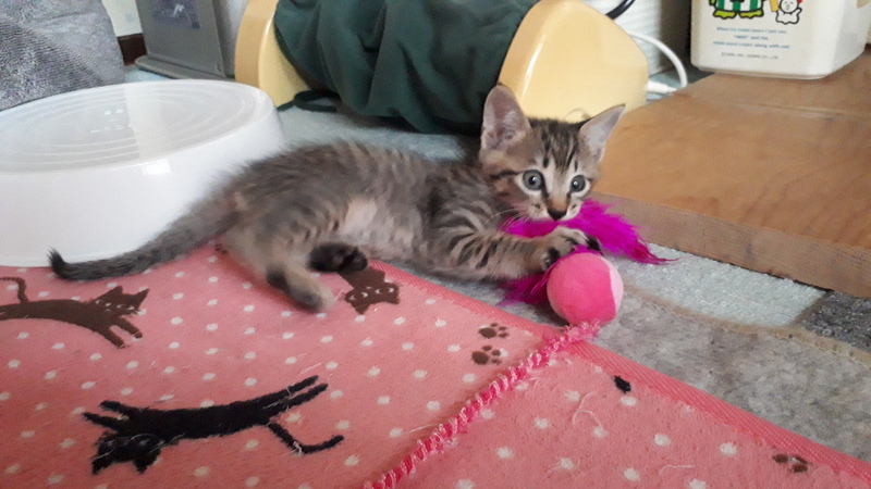| 特徴(性格など) | 虎猫(濃い)1匹 ひかえめで臆病です。 虎猫(薄茶)1匹 活発で食欲旺盛です。 トイレ躾済。 |