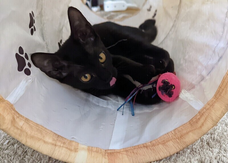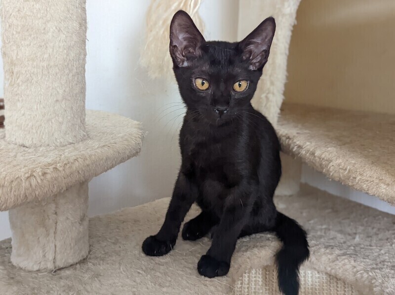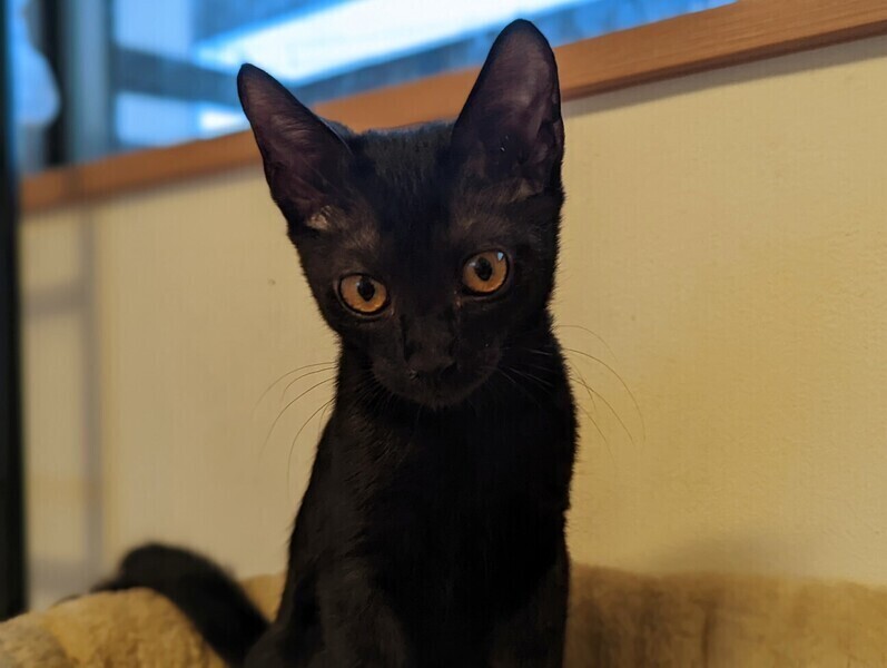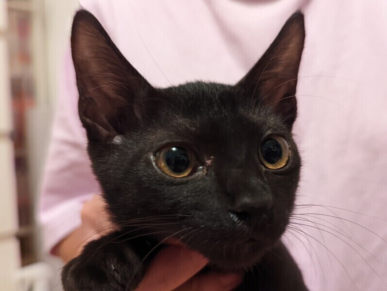 | 特徴(性格など) | ◆ ブラックイエローちゃん まんまるお目々の活発な黒猫女子 ●月齢の小さな子猫は、以下の条件についてご了承の上で応募をご検討下さい。 ◆お留守番の少ないご家族を希望します。 ◆2匹でお迎えくださるご家族を優先いたします。 ◆小さなお子様のいるご家庭は状況によりお断りする場合がございます。 ◆高齢者のみのご家族からの子猫のお申し込みはお受けしていません。 ○ 栃木のセンターから母猫と兄弟と一緒に保護されました。 ○ 生後3ヶ月位(2022年9月初旬時点)の黒猫女子です。体重は 1.22kg(2022年9月5日時点)です。 ○ 細身で手足がほっそり長くまん丸の目が可愛い女の子です。 ○ 尻尾は先の方でわずかに鍵になっています。 ○ とても活発で遊ぶのが大好きです。 ○ 高いところにもどんどん登るので脱走に注意してください。 ○ 人にも慣れていますし、大人の猫にも負けず一緒に遊びます。 ○ 同じく募集中のきんつぎ、ハナテンテン、ゴチャとは兄弟です。 ○ 今は、ゴチャと、一緒に栃木センターから保護されたはぐれと仲良く暮らしています。 ★ワクチン1回接種済。 ★ 不妊手術は成長と体調をみて実施予定です。 ★猫エイズ、猫白血病ともに陰性。 ○YouTubeにも動画をあげています。こちらもご覧下さい。 「ブラックイエイロー」https://youtu.be/GsJc1hD4fMA ○9/18(日)開催の譲渡会に参加予定!下の要項をお読みいただき、ぜひ会いに来てください♪ ☆★☆★☆★☆★☆★☆★☆★☆★☆★☆★☆ ~9月18日(日)市ヶ尾にて譲渡会開催!~ ◎場所・・「東急ドエル市ヶ尾プラーザビル2階集会場」 神奈川県横浜市青葉区市ヶ尾町1154-2 田園都市線「市ヶ尾」駅西口より徒歩約2分 ◎日程・・9月18日(日)(雨天決行) ◎時間・・13時から16時(受付は15時30分まで) (会場に利用可能な駐車場はございません。近隣のコインパーキングをご利用ください。) *3密対策のため、当日12時30分より全時間分の整理券を配布いたします。整理券枚数には限りがございますので、上限に達した場合はご入場できません。 *参加の際は、マスクの着用、アルコール消毒のご協力をお願いいたします。 *当日は検温の上、体温が37度以上の方はご参加いただけません。 *混雑状況により、中止させていただく場合がございます。 ※参加予定の犬猫は体調により参加できない場合があります。ご了承ください。 ☆★☆★☆★☆★☆★☆★☆★☆★☆★☆★☆ |