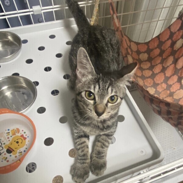 | 特徴(性格など) | ◆ちむちゃん 慣れたらスリゴロのキジトラ子猫 ●月齢の小さな子猫は、以下の条件についてご了承の上で応募をご検討下さい。 ◆お留守番の少ないご家族を希望します。 ◆2匹でお迎えくださるご家族を優先いたします。 ◆小さなお子様のいるご家庭は状況によりお断りする場合がございます。 ◆高齢者のみのご家族からの子猫のお申し込みはお受けしていません。 ○沖縄県内で保護されました。 ○生後4〜5か月ぐらい(2022年9月上旬時点)のキジトラの女の子です。 ○ビビりで、慣れるまで1週間くらいかかりますが、慣れたらスリゴロです。同居の子猫達で手の取り合いです。 ○抱っこは嫌いかも。 ○知らない人が来たら固まるので、少しずつ馴らしてあげてください。 ○好奇心はあるものの、これまたビビりとの攻防戦が心の中で起こっているようです。 ○元気にすくすく育っています。 ☆ワクチン1回接種済み。 ☆猫エイズ、猫白血病ともに陰性。 ☆不妊手術は体調と成長をみて実施予定です。 ○9/11(日)開催の譲渡会に参加予定!下の要項をお読みいただき、ぜひ会いに来てください♪ ☆★☆★☆★☆★☆★☆★☆★☆★☆★☆★☆ ~9月11日(日)新山下にて譲渡会開催!~ ◎場所・・「島忠ホームズ 新山下店」 神奈川県横浜市中区新山下2丁目12−34 JR根岸線「桜木町駅」より横浜市営バス(8.26.58.148系統)乗車「貯木場前」より徒歩約5分 みなとみらい線「元町・中華街駅」より徒歩約15分 ◎日程・・9月11日(日)(雨天決行) ◎時間・・12時から15時 【14時30分受付終了】 (会場に利用可能な無料駐車場がございます。そちらをご利用くださいませ。) 今回はコロナ対策のため、制限を設けての開催となります。 *3密対策のため、当日10時より全時間分の整理券を配布いたします。整理券枚数には限りがございますので、上限に達した場合はご入場できません。 *各回15分 *各回先着3組様 *参加の際は、マスクの着用、アルコール消毒のご協力をお願いいたします。 *当日は検温の上、体温が37度以上の方はご参加いただけません。 *混雑状況により、中止させていただく場合がございます。 ※参加予定の犬猫は体調により参加できない場合があります。ご了承ください。 ☆★☆★☆★☆★☆★☆★☆★☆★☆★☆★☆ |