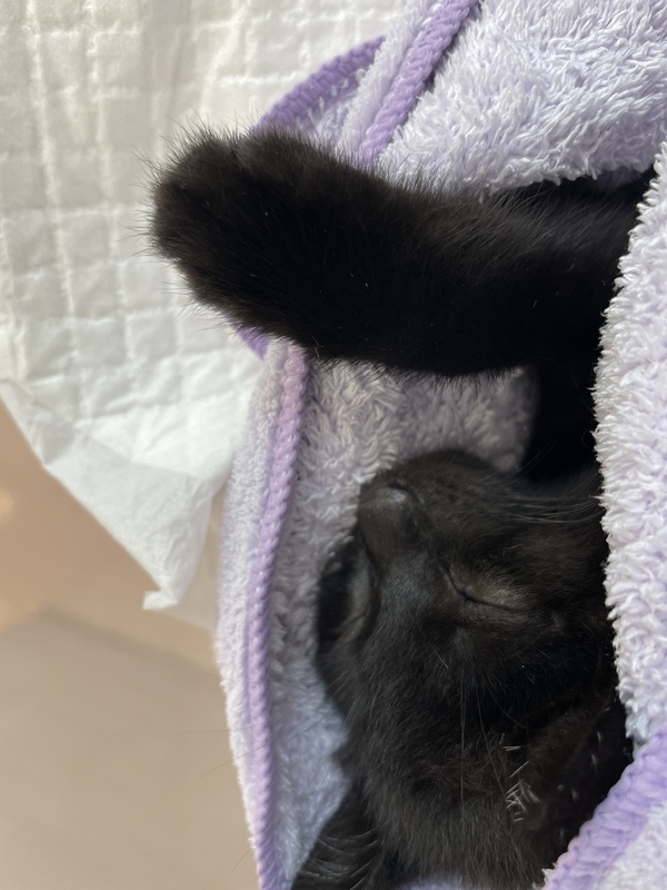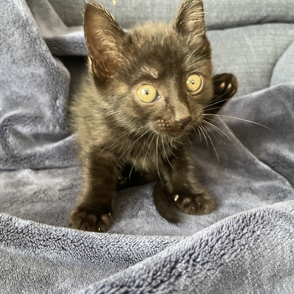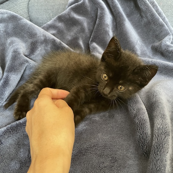 | 特徴(性格など) | 名古屋市内で9月8日に保護した黒色で目がくりくりの可愛い女の子の子猫です。動物病院で月齢の確認と体調のチェック済みになります。月齢は1ヶ月半ほど。保護したばかりですので今現在は少し下痢気味ですが病院で栄養剤を注射していただき、整腸剤のお薬を服用中です。とくに病気のような初見はないとのことです。フードはカリカリのものを少しだけふやかして食べています。人懐っこくとても可愛いです!(まだワクチンを打てる月例では無いので打ってません) | ||