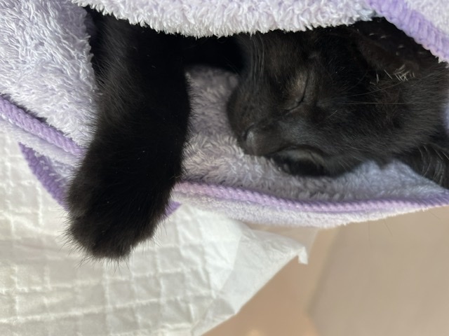 | 特徴(性格など) | 名古屋市内で9月8日に保護した黒色で目がくりくりの可愛い女の子の子猫です。動物病院で月齢の確認と体調のチェック済みになります。月齢は1ヶ月半ほど。保護したばかりですので今現在は少し下痢気味ですが病院で栄養剤を注射していただき、整腸剤のお薬を服用中です。とくに病気のような初見はないとのことです。フードはカリカリのものを少しだけふやかして食べています。人懐っこくとても可愛いです!(まだワクチンを打てる月例では無いので打ってません) | ||