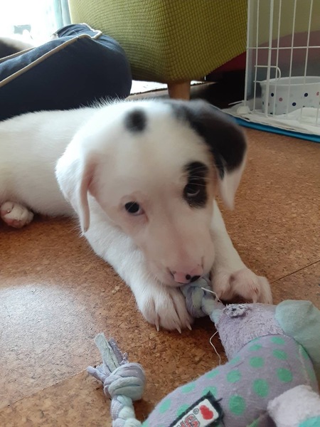 | 特徴(性格など) | 名前:ちゃわん 犬種:Mix 性別:メス♀ 毛色:白黒 年齢:3ヶ月くらい(2022.6.2生まれ) 体重:6.6kgくらい(ぐいぐい成長中) 性格:人も大きなワンコも大大大好き! 活発勝ち気で、運動神経抜群です。 元気いっぱいに兄弟わんこや先輩わんこと遊び回っています。 トイレは、ハウスやベッドではしませんが、その辺でします。トレーニング中です。 留守番はほとんどしてません。留守番がないご家庭を希望します。 散歩はワクチンの兼ね合いでまだですが、そろそろ行きます。 と~~~っても愛想よく、常に高速で尻尾をふってくれます。怖いものなしなので、事故のないよう見守りが必要です。 この先大人になって介護になる年齢になるまでしっかり面倒見れるご家族様をお待ちしております。 |