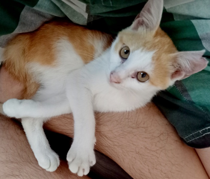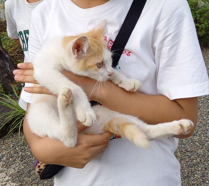 | 特徴(性格など) | ■柄:白茶 ■人がいないとゲージで大人しく寝ており、お世話をしている子供の声が聞こえるとミャーミャーと泣いて待っていてとってもかわいい女の子です。 ■尻尾は、かぎしっぽのようです。 ■人が大好きで、自分から膝の上に乗ってきたり、すりすりしてきたりととっても甘えん坊ちゃんです。 まだ仔猫ちゃんなのもあり、遊ぶことも大好きです。 ■他猫ちゃんともすぐ慣れて怖がることもなく、仲良くできるタイプのようです。 ■我が家に中型犬2匹おりますが、ルンちゃんとは別部屋にしておりますので、犬との相性はよくわかりません。 |