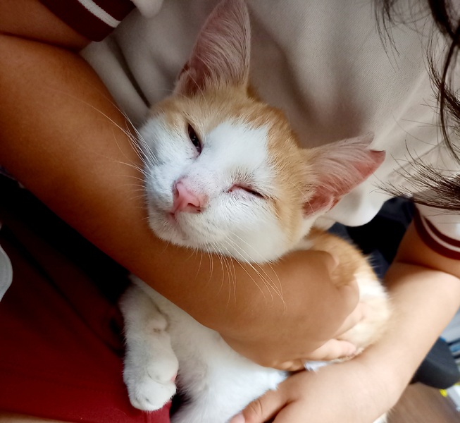 | 里親募集する理由 | 近所の弁財天で1匹だけ数日いたので9/1に保護いたしました。 保護したときの写真が6枚目の写真です。 9/1に保護。 〇ノミダニ駆除済 〇回虫がでてきたので治療し、9/7に再検便し問題なし 〇左目の目ヤニが少し出ているので、現在軟膏で治療中 〇猫エイズ・猫白血病:陰性 〇年齢(生後4か月)は9/1時点の推定年齢です。 シャンプーもしてきれいで元気いっぱいです。 今のところ、トイレも失敗ナシです。 ※10/7が2回目のワクチン接種予定となっており、 こちらで接種した場合は、譲渡費用に加算させていただきます。 |