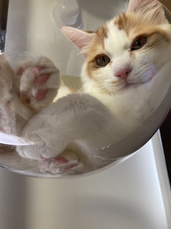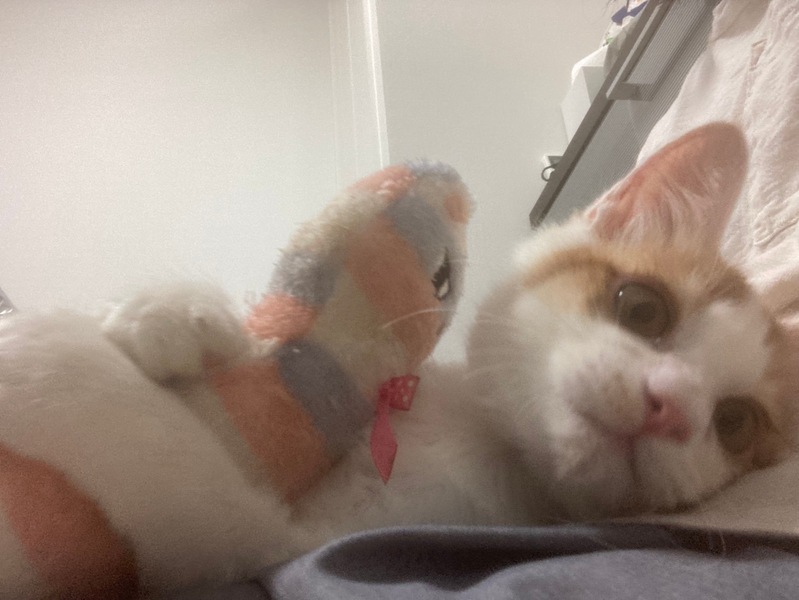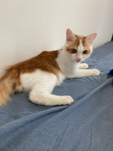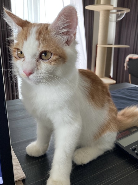 | 特徴(性格など) | 茶白色の男の子 体重約2kgちょっと。 かまってもらうのも好きなので、膝に乗ったりついてきたり、かわいいです。 【食事】カリカリやウェット、メーカーを変えても、どれも標準量くらい食べます。 |