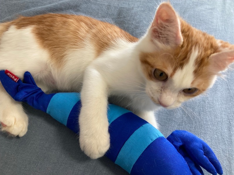 | 里親募集する理由 | 勤務先からの帰宅時、子猫が車道に入って行き、うずくまってしまいました。親猫も見当たらず元気もなさそうだったので保護しました。 そのまま動物病院に連れて行き、その後も定期的に診察を受け検査や治療済みです。 今使用中の薬はありません。 下記に詳細あります。 |