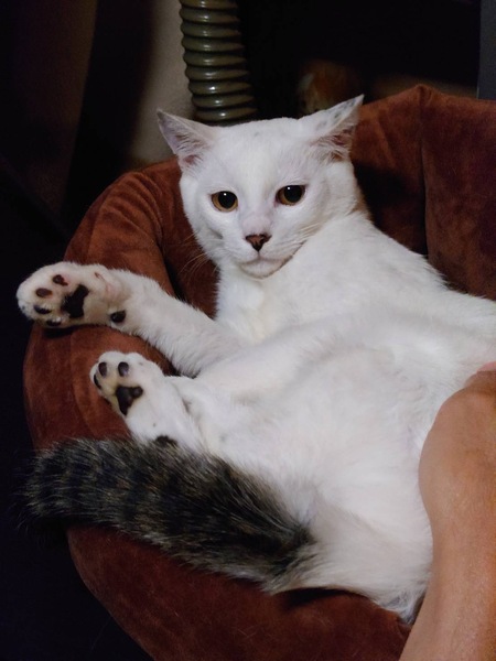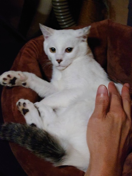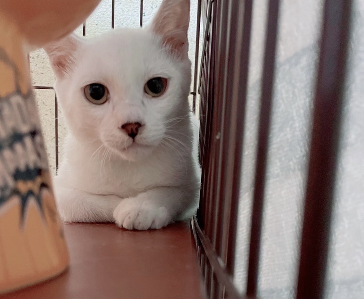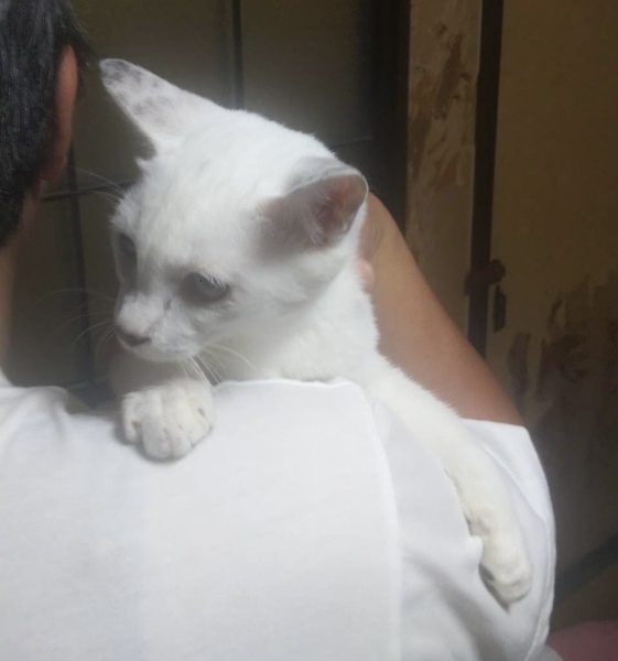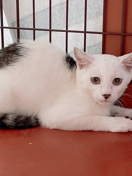 | 特徴(性格など) | <初期医療> 健康状態:良好 ウイルス検査:陰性 ワクチン接種:済み(1回目8月24日)(2回目9月20日予定) ノミダニ駆除薬:済み 糞便検査:済み キュートな白キジ子猫の男の子です。フードもよく食べ、トイレもバッチリです。 甘えん坊で抱っこもナデナデが大好きです。 耳の黒い斑点は模様です。抱っこ好きのビビりです。 お留守番はできますが、お留守番の少ないおうちを希望します。 |