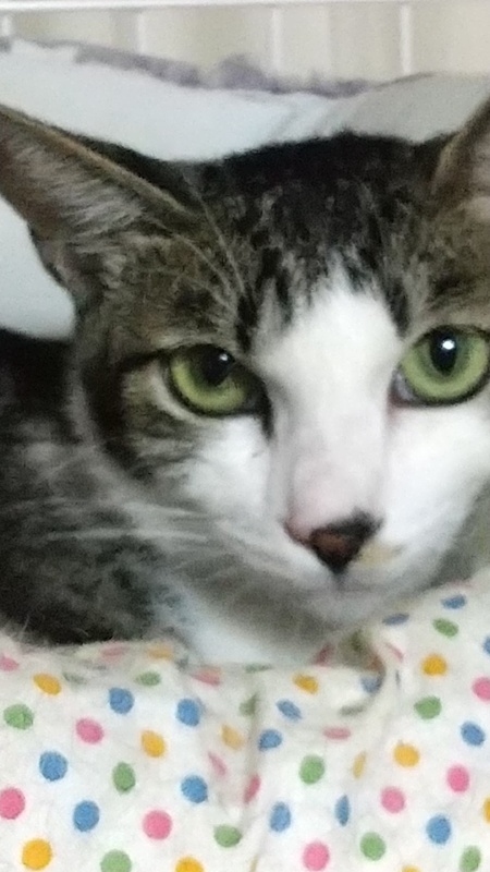 | 特徴(性格など) | キジ白 推定8ヶ月です 小柄なノラさんを捕獲して2ヶ月半になります。 お茶目で良く遊び、人慣れ訓練中です。 |
