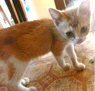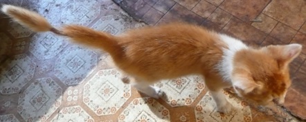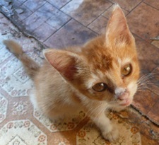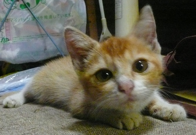 | 特徴(性格など) | クリーム茶。トラ模様がないのでネットで調べたらチャトラと白猫で、(たまに)トラ模様のない茶猫が生まれるそうです。ネットではクリーム茶と呼んでいました。この子は頭に少しだけシマ模様がありますが、あとはほとんどシマがありません。また、チャトラにはめずらしくメスです。保護した当初は、あまり人に慣れていませんでしたが、最近は寄ってくるようになりました。外に出ても戻ってきます。しっぽの毛が一部抜けています。病院の先生によると、ケガではなく精神的なものかもしれない。。。とのことでした。猫風邪をひいていたので、抗生物質で治療し元気になりました。顔の汚れもだいぶとれて、美人ちゃんになっています。 | ||