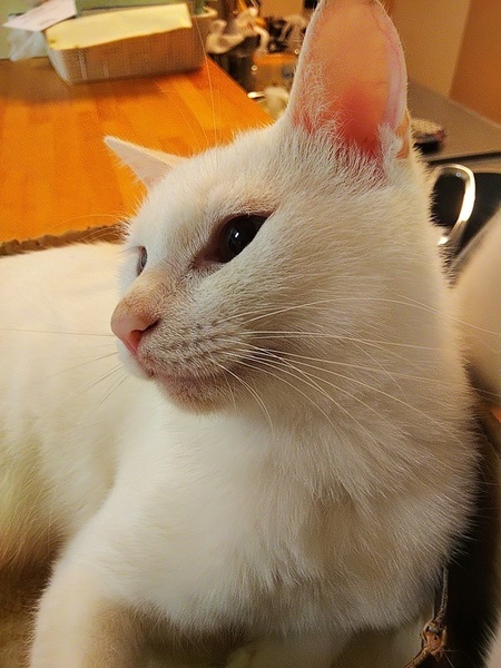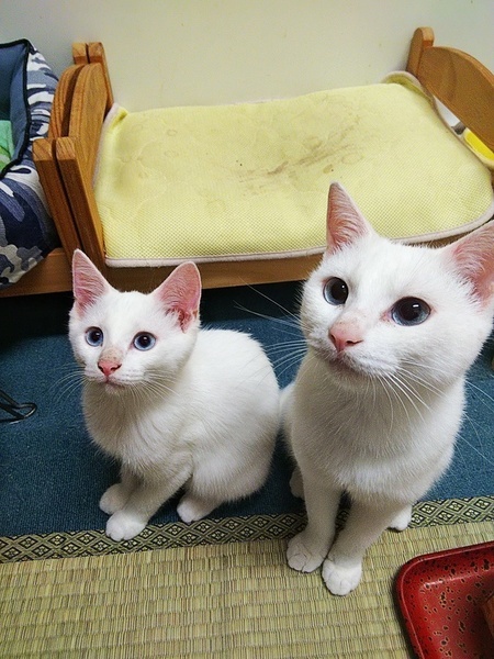 | 特徴(性格など) | 青い目の白猫さん、約2歳です。 我が家の物置小屋に仔猫を連れてきたところを保護しました。 2歳ですが、そのほとんどをお外で過ごしてきたので警戒心は強いです。 猫エイズ、猫白血病はいずれも陰性、駆虫薬を塗布して駆虫済み。 |
