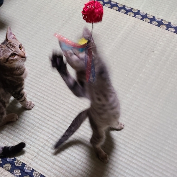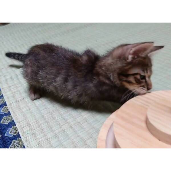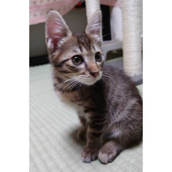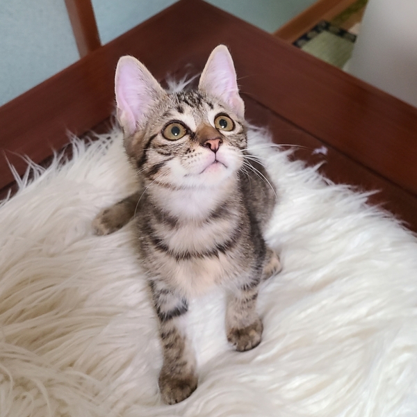 | 特徴(性格など) | キジトラの男の子です。 人見知りせず、人とも猫とも遊ぶことが大好きです。何にでも興味を示します。最近はヒモにじゃれたり、ボールを追いかけたり、トンネルのおもちゃで遊んだり、他の猫とも毎日楽しく過ごしています。 お留守番中はケージの中で落ち着いて過ごしていて、イタズラなどはありません。窓辺でお外をのんびり眺めることも好きです。 人に対しては甘えん坊で、夜は人にくっついて寝ています。 ごはんは、ドライフードとウェットフードを混ぜて1日4回食べています。好き嫌いせず、良く食べています。 エイズ、白血病ともに陰性です。 |