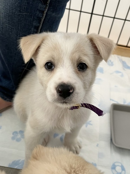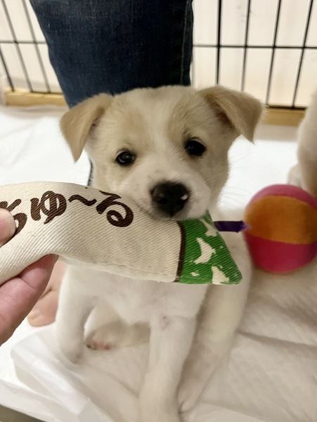 | 特徴(性格など) | 【はじめに】ペットのおうちからのお問い合わせは正式なお申し込みになりません。ご応募は必ずアグリドッグレスキュー応募アンケートフォームよりお願いいたします。 ペンネちゃん(仮名) ・MIX子犬の女の子 ・生後6週くらい ・体重2.4kg(9月13日現在) ・便検査済 〇今後の医療 ・子犬ワクチン追加接種 ・狂犬病予防注射接種 ・不妊手術 ・マイクロチップ装着 いつも誰かのそばにいたい甘えん坊なペンネちゃんは、人にも犬にもとってもフレンドリー! ちょっぴりシャイな部分もありますが、基本遊ぶのが大好きなやんちゃで元気いっぱいな女の子です。 甘えん坊過ぎて、寂しくなるとヒンヒンとよく泣きます。 常に側に居たい!常にかまってあげたいご家族さまにはピッタリな子だと思います。 かわいい子犬との生活は、賑やかで楽しくてとても幸せなものですが、パワフルな子犬をお世話する中には、大変なことも多くあります。以下をよくお読みいただき、覚悟をもってお迎えくださるご家族様からのご応募をお待ちしています! ※ 一緒に保護している「マカロニちゃん」と兄妹です 【食事】 現在は1日5回、離乳食を食べていますが、譲渡時は1日4回ふやかしたドライフードになると思われます。犬にとって楽しい食事の時間は、遊びや学びの時間でもあります。お皿で食べるだけでなく、ときには知育玩具を用いるなどの工夫をし、食事の満足度を高めていただきたいと思います。 【排泄】 新しい環境では一からのトイレトレーニングが必要になります。トイレのタイミングを見計らって誘導する、成功したらその場でごほうびをあげる、失敗したらすぐに片付ける等、トイレが定着するまでは、目を離さず、叱らず、根気強く、おおらかな気持ちでトレーニングをお願いします。 【生活】 朝から晩まで、1時間たっぷり遊んで2時間寝る、の繰り返しです。子犬は一人では遊べませんので、引っ張りっこなどの相手になり、十分に満足し、疲れて眠たくなるまで一緒に遊んであげることが必要になります。夜中でも遊びたくなることがありますし、環境が変わり夜泣きをする場合もあります。 【散歩】 譲渡時は、抱っこ散歩で外の環境に慣らす段階になります。外慣らしの継続と、ワクチンが全て済みましたら朝晩最低でも1時間ずつのお散歩が必要になります。 散歩時の逸走は命にかかわりますので、ダブルリードの使用、伸縮リードの使用禁止をお願いしています。中学生以下のお子様やご高齢の方がリードを持つことも禁止とさせていただいております。 【室内の環境設定について】 ケージを使用しない室内フリー飼育をお願いしています。ご家族様と同じスペースで家族の一員として生活できるようにお願いします。 好奇心がいっぱいの子犬ですので、いろいろな物に興味を持ち、なんでも口にしようとします。誤飲誤食には細心の注意と対策が必要です。また、いくら対策をしても、子犬は床、壁、家具、あらゆるものをかじりますので、そんな時でも叱らずに受け止めていただきたいと思います。賃貸住宅ですと、退居時のトラブルにつながることも考えられます。 すぐに大きくなり運動能力も高く力も強くなりますので、大切な命を守るため、脱走防止の扉や柵の設置などは万全の対策をお願いしております。 子犬は見守るだけでは育ちません。お世話は全て子犬のペース、その都度の対応が必要になります。 ご家族様の生活の中に、子犬にかけられる時間的、経済的、精神的余裕が十分にあるか、よくよくお考えいただきたいと思います。 十数年後には介護が必要になるときがくるかもしれません。当然医療費もかかります。体重20キロの老犬を介護する体力と気力に自信はありますか?覚悟はありますか・・・? まだ始まったばかりの真っさらな犬生。消えてしまったかもしれない小さな命です。 子犬との暮らしの喜びはもちろんのこと、大変さも十分ご理解いただき、その大変さをも一緒に楽しんでくださるようなご家族様に、最後のバトンを託せることを願っています。 これから一緒にたくさん学び、たくさん遊び、生涯大切な家族として守り、惜しみなく愛情を注いで下さる優しいご家族様からのご応募を、心よりお待ちいたしております。 ◉預かりブログ・譲渡条件を【必ず】熟読の上、下記『アグリドッグレスキュー応募アンケートフォーム』よりご応募ください。 預かりブログ『仮母はじめました!』 →https://ameblo.jp/micteru/ 譲渡条件 http://aguri.nomaki.jp/z.html ★【犬の里親募集アンケートフォーム】★ http://my.formman.com/form/pc/HSiHA19xGo1sxlwu/ |