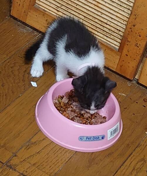 | 里親募集する理由 | 7月31日早朝、散歩をしていた方が、目の空いていない5匹の子猫が入った箱を見つけました 散歩に行くときはなかったので捨てられたばかりなのでしょう 保護された方は、世話ができないというので、私が預かりました 我が家ではすでに12匹いて、これ以上飼えない為里親さんを募集します |