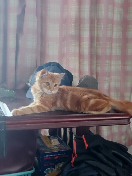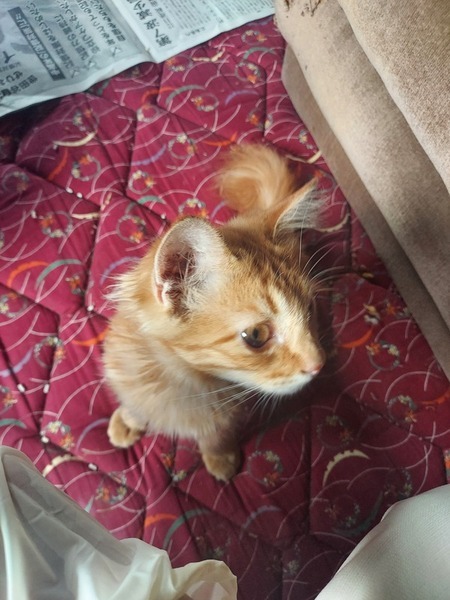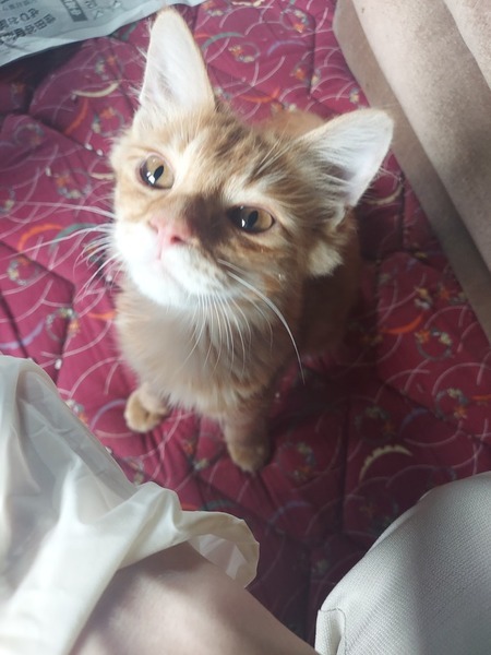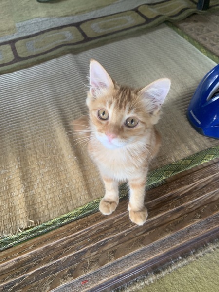 | 特徴(性格など) | 茶トラ(アメショが混じってるかも)、かぎしっぽが特徴。 やんちゃで好奇心旺盛です。 人慣れしており怖がらず、じっと見つめてくる時があります。 ほとんど鳴かず、静かです。 |