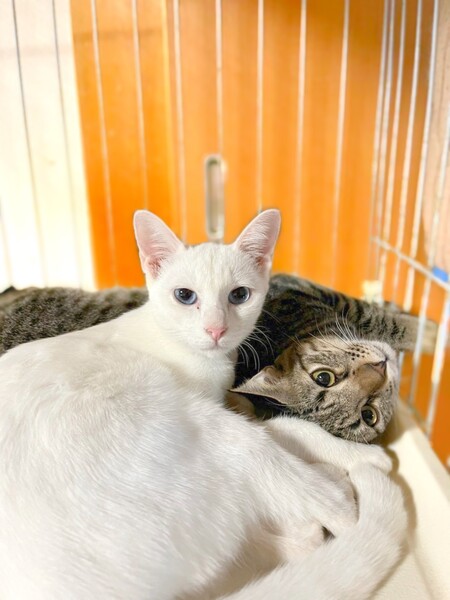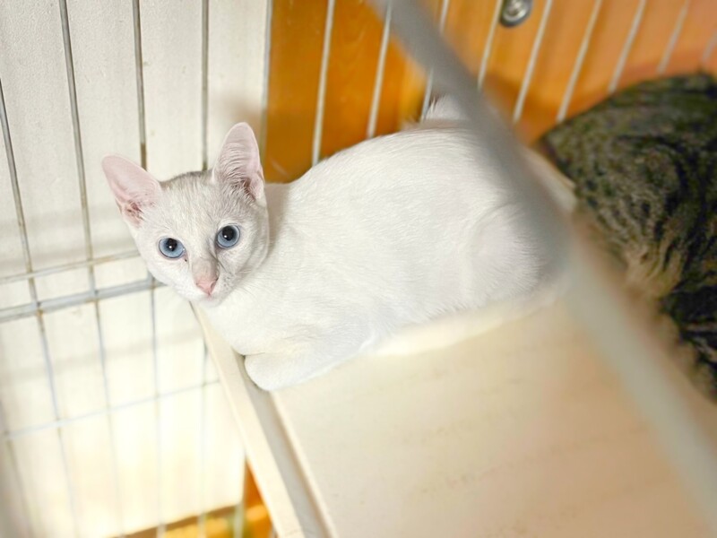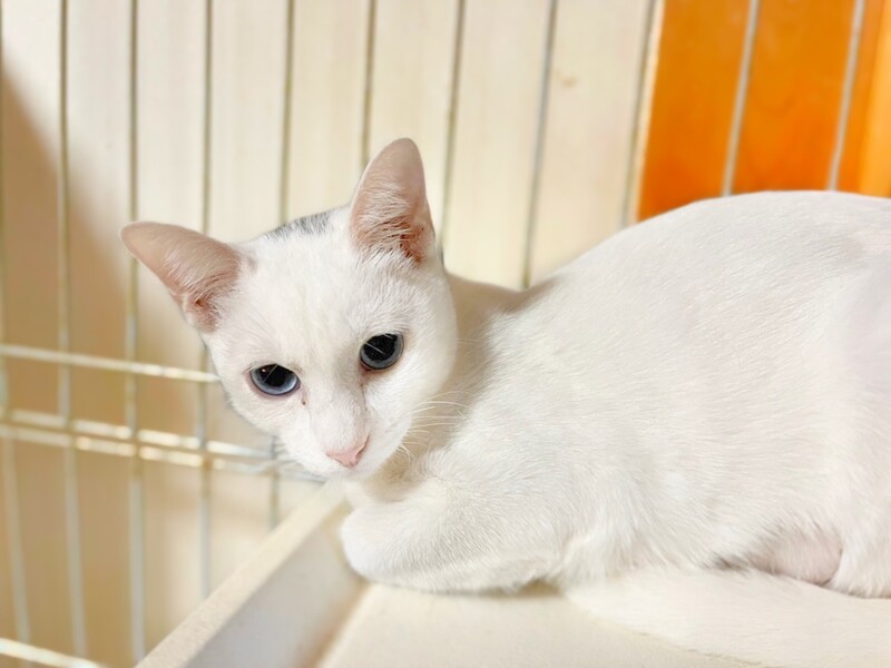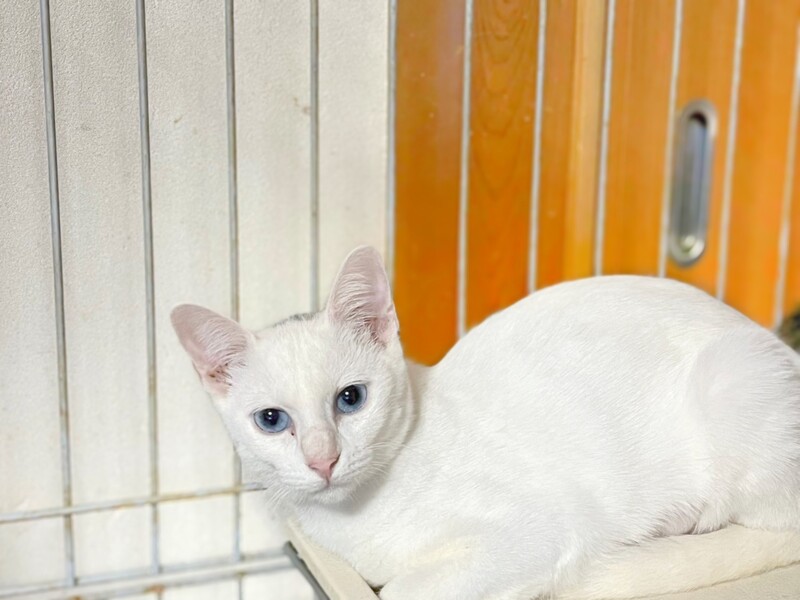 | 特徴(性格など) | けまりちゃん ブルーアイのとても綺麗な瞳をしています。 頭の上に少しグレーの模様がチャームポイント。 まだ少し警戒はしていますが、時々気を許してくれてお腹を触らせてくれます^_^ 抱っこはまだ嫌がりますがボランティアさんのおうちで兄妹のつばめくんと一緒に過ごしています。 保護当時よりは怖がるのもマシになってます。 是非けまりちゃん、つばめくんを見に来て下さい。 元気に過ごしています。 ・ノミダニ回虫駆除済み ・エイズ(−) 白血病(−) 検査済み ・3種混合ワクチン接種済み ・避妊手術済み |
