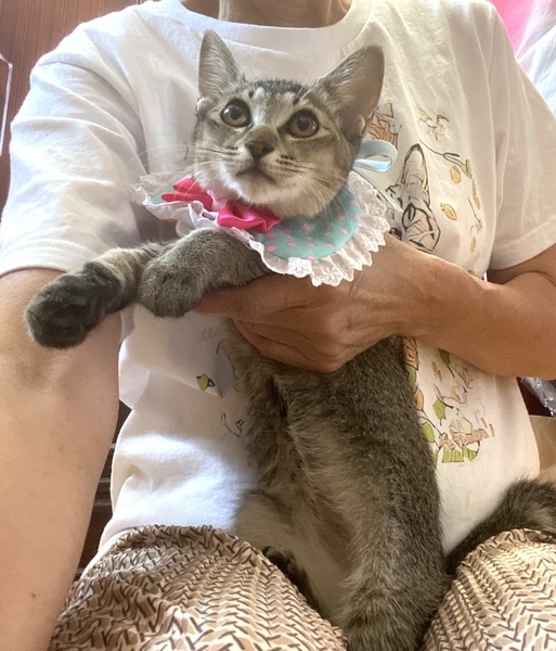 | 特徴(性格など) | 風邪も引いた事なく健康で元気いっぱいの女の子です。 甘えん坊で抱っこも大丈夫、爪切りもできます。 アビシニアン風でスベスベの毛並み、毛色はパッと見グレーにもみえます。 ・レボリューション済み ・検便 虫下し済み ・3種混合ワクチン2回済み ・ウイルス検査(エイズ 白血病共に陰性) |