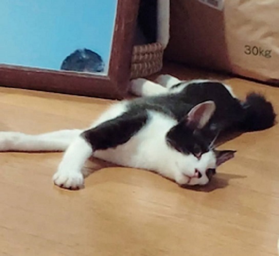 | 特徴(性格など) | ●ウイルス検査 ⇒エイズ・白血病陰性 ●特徴 ・白黒ハチ割れ ・黒い肉球! ・長めの曲がりしっぽ ●性格 天真らんまん! 元気で素直な女の子。 |