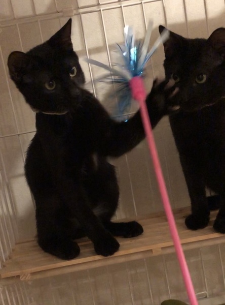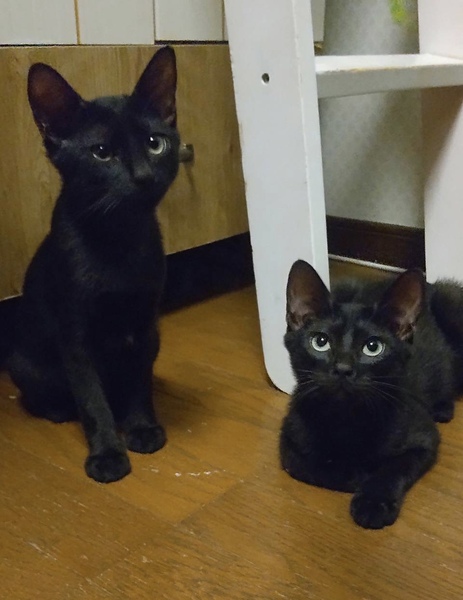 | 特徴(性格など) | 仮名)ドット ボンボンしっぽの黒猫 4か月 ビビリですがなでなでは大好きです。 2匹とも食いしん坊です。 |