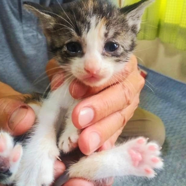 | 里親募集する理由 | 農家の庭先に急に現れた猫の集団の中の三毛猫ママが産まれたばかりの子猫を咥えて玄関前に運んできた子猫です。母猫と一緒に保護しました。 | ||