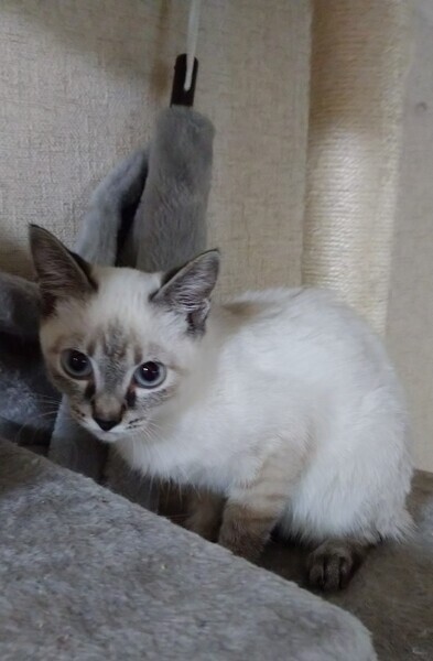 | 特徴(性格など) | シャム系のような色柄です。おとなしくまだ少しビビりさんですが抱っこもでき、徐々に人慣れしてきています。 便検査異常無し 【虫下し】済み 【ノミ・ダニ】駆除済み 【ワクチン】2回 接種済み 【エイズ・白血病】ともに陰性 【去勢手術】済み |