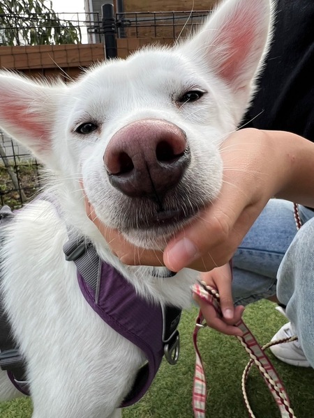 | 特徴(性格など) | 仮名・白(しろ) サラサラした触り心地に清潔感のある真っ白なボディ。 砂浜育ちなので、足腰もしっかりしていてジャンプが得意です。 野犬として生活していたとは思えないくらいに人が大好き! 好きになった人に対してはしっぽを振って喜びます。 忠誠心がある子なので、きっとご家族とよい関係を築いていけると思います。 ですが、すぐに誰にでもしっぽを振ってお腹を見せるタイプの子ではありません。 他のワンちゃんとのコミュニケーションについてはまだまだ苦手です。 最初は警戒するので、時間をかけて苦手を克服していってあげてほしいです。 お散歩はたくさん歩くのが好き。 トイレは外派です。 時間をかけてゆっくり白とのコミュニケーションを取ってくださるご家庭が希望です。 健康状態 良好。 フィラリア陰性。 体重 14.4kg(9/23) |