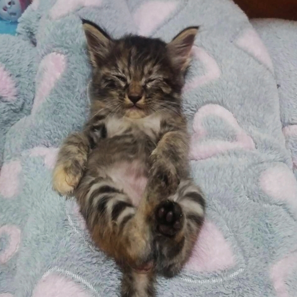 | 特徴(性格など) | 小柄ですがとても元気に走り回り、疲れるとパタッとその場で寝てしまいます。 ややフワモコな所と右手だけ手袋してたり胸のハートに見える模様も素敵女子です。 兄妹猫と一緒のご縁を希望したいです。 |