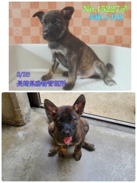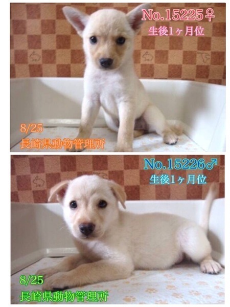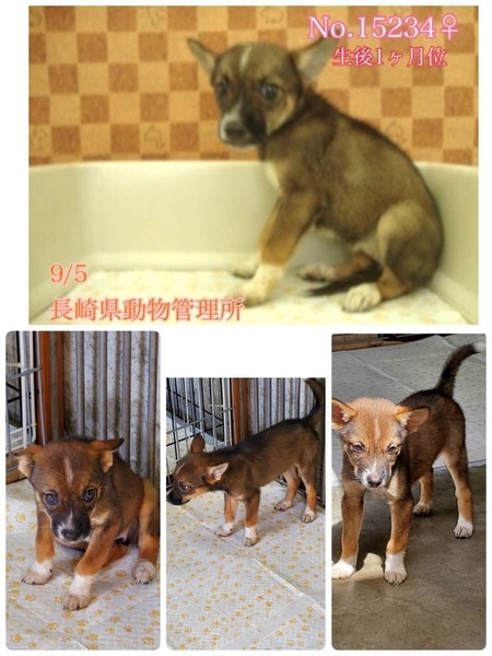 | 里親募集する理由 | 〜追記〜 4匹は里親様が決まりました 後は黒茶の男の子1匹ですฅ•ﻌ•ฅ ♡まだよちよち歩きの生後1か月ちょっと位、とっても可愛い雑種の子犬4きょうだいですฅ•ﻌ•ฅ (男の子3匹、女の子2匹) 野良ちゃんが生んだようで、長崎県壱岐市石田町にて8/25と9/5にそれぞれ保護され保健所収容、現在は長崎県動物管理所へ移送されてきています。 突然親犬と離れ離れになり連れて来られてどんなに寂しく心細いか。 一日も早く温かい家庭の中で過ごさせてあげたいです。 ⭐️県外、遠方の方でも譲渡の条件が合い、良縁に恵まれましたら里親になっていただけますのでどうぞ宜しくお願い致します! ※※※長くなりますが犬猫と里親様の幸せの為にも、募集内容を熟読し、必ずご家族とよく相談をされた上、ご家族全員の賛同を得られてからのお問い合わせ をお願い申し上げます※※※ ⭐️ 外飼いでは無く、室内飼育で家族の一員として迎えて下さる方、「引き渡し方法」のところにあります【アンケート】にご回答とどの子をご希望か、と共に、お問い合わせを頂けますよう、お願い申し上げますm(_ _)m 優しい職員さん方が大丈夫だよ、幸せになれます様にと毎日触れ合い、声掛けしながら一生懸命にお世話してくださっています。 まだ少し怖がっていますがだいぶ人馴れしてきて撫で撫でも抱っこも大丈夫、尻尾フリフリ甘えてくれるようになりました(^^) 子犬らしくきょうだい同士じゃれ合って愛嬌たっぷり♪ ? 栄養不良に不衛生な環境からの保護・収容で、ノミダニがついていましたし痩せていました( ; ; )栄養状態や健康状態がいいとは言い切れません。体調も急変しやすいかと思われます(>_<) もしかしたら何か病気や障害が有るのか無いのかも、分かりません。 今後体調の急変もあり得ることを念頭に置き、譲渡後は早急な病院受診が可能なご家庭を希望しておりますm(_ _)m 現在は1日に2回、ご寄付で送って頂いた栄養価の高い良質な仔犬用のドライフード(ネイティブドッグフードパピー)をミルクでふやかしたものを食べています。 まだまだ幼い為、長時間のお留守番は出来ません。寂しくて夜鳴きする子もいます。 今後の健康な成長の為に良質なフードを与える事が可能な方、育てる自信と覚悟のある方、飼育経験のある方が望ましいです♡ ※子犬は思っていた以上にお世話が大変だと言われる方が多く、排泄も頻回でこれから甘噛み期もありますฅ•ﻌ•ฅ まだしばらくお散歩デビューは出来ませんが今後成長していく中で、急な物音や知らない場所にビックリして怖がって、咄嗟に逃げよう、逃げようとする可能性も大いにあり得る事だと思いますし、その時の力、引きの強さも想定し、急な走り出しや高い塀や壁・柵の飛び越え・急な方向転換や首を振って後退りからの首輪抜け、胴輪抜けにはご用心です! 呼び戻しを教えなければもし逃がしてしまったらピューっと走って行ってしまうタイプかもしれません!(>_<) もし逃がしたらもう捕まえられない!とお考えくださいm(_ _)m ※繰り返しになりますがどんな子であっても、慣れてきても常に、脱走・逃走には充分な注意と最大限の配慮をお願いしております m(_ _)m 適切に制御し、躾や朝晩のお散歩、運動の時間をしっかり取ることの出来る、沢山優しく触れ合って頂ける方、先ずはじっくりと時間を費やし触れ合い、信頼関係を作っていく事の出来るご家庭を希望しております。 ♡人間が焦らずにゆっくり見守りながら、愛情を持って接ししっかりとお散歩にも連れ出して行けば、この子達ならきっとすんなり新しい家庭に馴染んでいける、優しい家族に囲まれて思い切り甘えて遊んでほしいのだと思います。 当分の間はかなり手がかかり大変かと思いますがまだ子犬ですし、広い心でドンとこい^_^と仰って頂ける方、愛くるしいこの子達をこの先も尻尾フリフリ♫ニコニコの笑顔にしてくださる方、いらっしゃいませんか? どうぞ宜しくお願い申し上げますm(_ _)m ⭐️必ず室内飼育で、譲渡後速やかに病院受診、健康診断、2回目混合ワクチン、生後4〜6ヶ月頃を目処に去勢、避妊手術をする事が可能なご家庭。 ⭐️まだまだ幼い為長時間のお留守番は出来ません。 なるべくお留守番の少ない(4時間以内) 沢山優しくスキンシップやコミュニケーションで触れ合っていただけるご家庭。 ストレスが溜まらぬよう成長後の運動量もしっかり確保出来るご家庭m(_ _)m ⭐️トイレの躾は1からとなります。まだ子犬なので躾は入りやすいと思われます。現在ペットシートでトイレの練習中(^^) 最初は何かと手がかかり大変ですが(広めのトイレスペースや、ペットシート、L字型トイレ、新聞紙を用意など)覚悟と根気・理解で受け入れて下さる方m(_ _)m ⭐️出来れば中型〜大型犬の飼育経験があり自信のある方、愛情を持って犬をしっかり躾することが出来る方、毎日朝晩のお散歩や運動にも充分時間をあてられる方、もし怖がってなかなかお散歩が出来ない