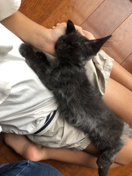 | 特徴(性格など) | 黒からグレーに変わりつつある、イケメンな男の子 人懐っこい性格で、誰にでもゴロゴロ言って擦り寄って行きます マイペースで、好きな場所を見つけてはゴロゴロ寝てます(笑) 兄弟のななちゃんと、いつもじゃれあってます ワクチン1回接種 エイズ白血病ウイルス検査陰性 ※パルボウイルス感染歴あり。 症状が重くとても心配な状況でしたが、治療・スタッフの手厚いケアにより回復してます。 |
