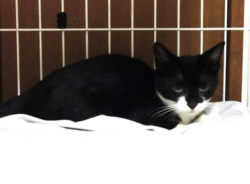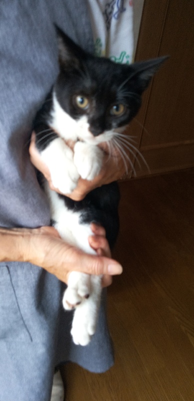| 特徴(性格など) | 頭から背そして尻尾まで黒いが顔の一部からお腹全体は白い 性格はおっとりでおとなしい 保護した当日から触れました。 |