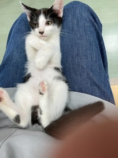 | 特徴(性格など) | ちょっぴり人見知りなところがありますが、実は甘えん坊なので先住猫がいるお宅だと、お友達になれると思います。 よく遊び、よく食べます(^^) |