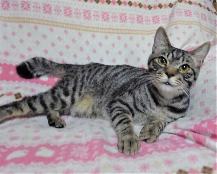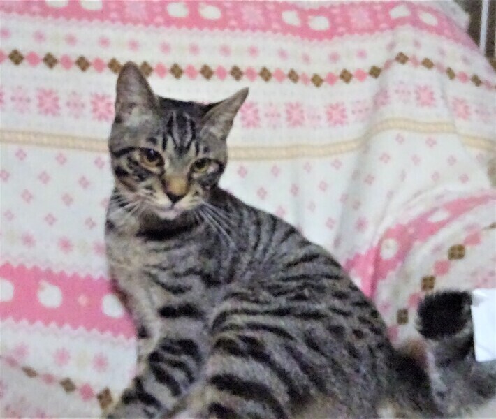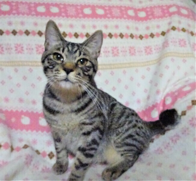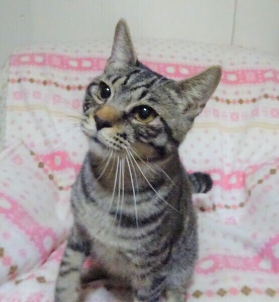 | 特徴(性格など) | 仮名: 投馬君(オス) 毛色: サバトラ、尻尾は先が折れています。 性格: ミルク育ちなので、人には馴れています。 ケージに近づくだけで飛んできます。 威嚇なく抱っこ出来、抱っこするとスリスリで、喉をゴロゴロ鳴らします。 小さい頃の猫風邪が酷く、鼻に後遺症が残っているので、鼻からズズッと音がしますし、くしゃみも出ます。 鼻水が出やすいです。 今は投薬中です。 成長とともに、良くなってくるとは思いますが、後遺症として残るようです。 ただとても元気で臭いもわかるので、ご飯を良く食べます。じゃらしが好き、探検も大好きです。 風邪後遺症がありますが、性格的には猫飼い初心者の方でも大丈夫です。 先住猫ちゃんがいても大丈夫です 鼻に後遺症があることをご理解頂けるお家を希望しています。 検便済 駆虫済 ノミ取り済 ワクチン済 去勢手術済 猫エイズ・白血病ウィルス検査は共に陰性 |