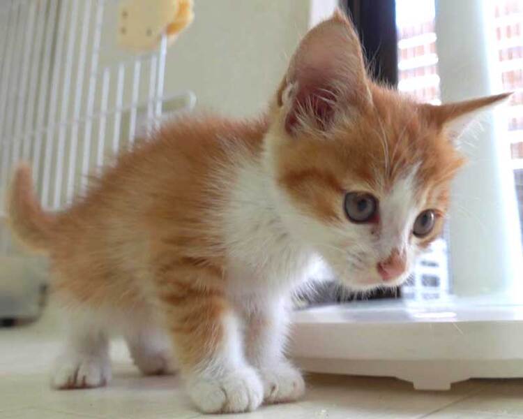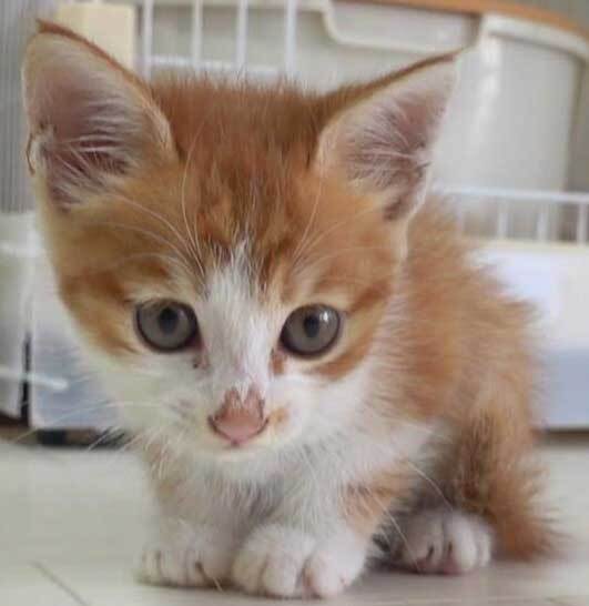 | 特徴(性格など) | 大変かわいらしい茶白長毛の子猫のメスです。 人馴れしています。 好奇心旺盛で元気です。 是非シェルターにお越しください。 |