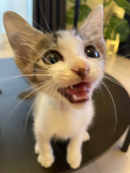 | 特徴(性格など) | 仮名・キキ 【特徴】 キジシロ(キジトラ柄に白のミックス) 目はヘーゼル系。 鼻はピンク。 肉球は薄茶。 足先は白ソックス。 【性格】 ヤンチャで遊び好き、活発で好奇心旺盛。 人懐っこくてとにかく甘えん坊です。 ミミ、ジジと兄弟です。 |