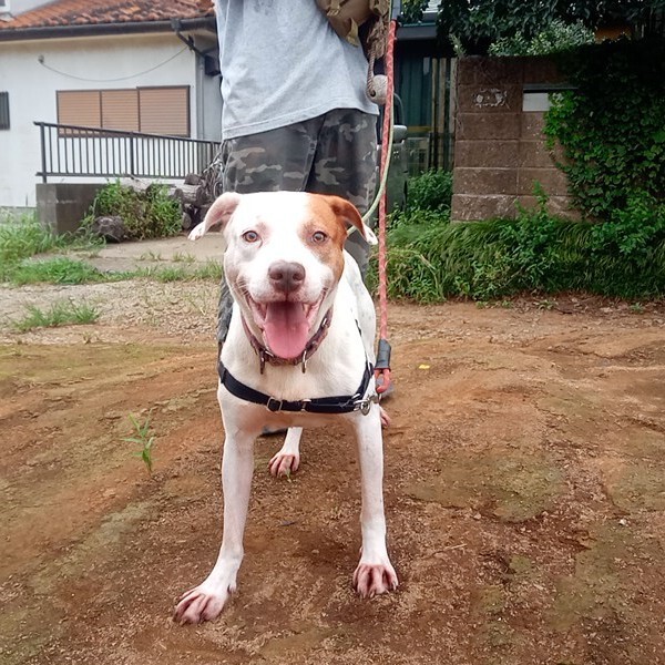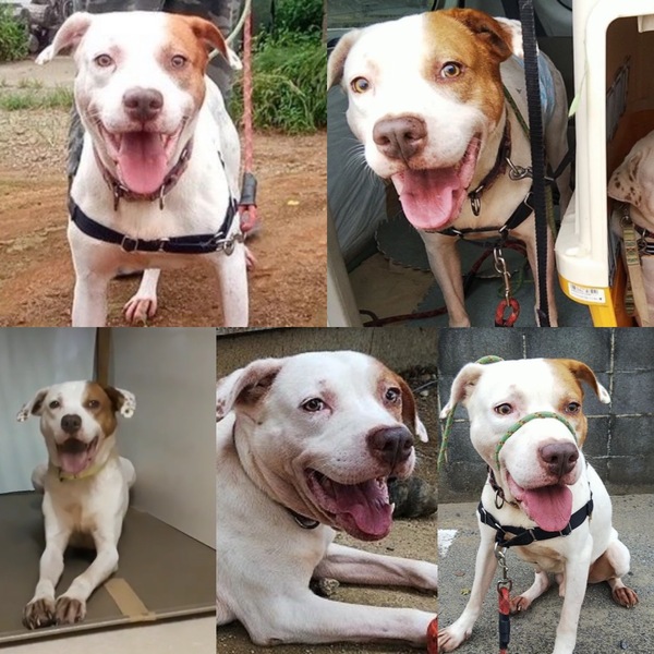 | 特徴(性格など) | ピットブルミックスと思います。 攻撃的な面は見られません。穏やか性格で室内フリーでも問題ありません。 あまり積極的に遊ぶ感じではありませんが、お庭でのボール遊びなどテンション上がるとよく遊びます。 元々保護犬で5年前に飼い主に引き取られた子だったため、年齢は7~8歳くらいかと推定。 飼い主が入院後死亡し、4ヶ月以上飼い主不在の空き家で暮らしていた状態でした。 8月末から預かりボラ宅に移動しています。 基本的には他の犬とも大丈夫そうですが、相手の犬の反応によっては応戦することもあります。 先住犬のいるお宅の場合には相性チェックいたします。 普段は結構落ち着いていて大人しく人間大好きです。 散歩はやや引きが強いです。散歩で他の犬と会っても上手にあいさつできます。 体重は23㎏。やや痩せ気味。 飼われていた間も体のお手入れやお散歩などはほとんどされておらず、皮膚状態はかなり悪かったです。 現在も、耳の炎症、足先のかゆみなどあり、ひどい時は通院が必要です。 なるべく千葉県内でのご縁を望みます。県外の場合は、片道90分以内で行ける距離までで検討します。 ピットなど闘犬系の飼育経験者、もしくは闘犬の特性を理解している方への譲渡希望。 預かりブログでも紹介していますので一度お読みください。 https://blog.goo.ne.jp/on_the-wind/e/40005d33ddcf86c8391712c4455cca48 |
