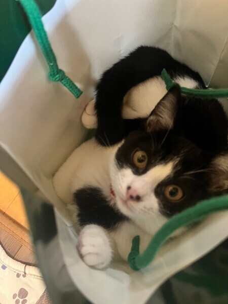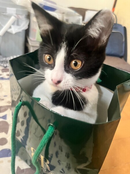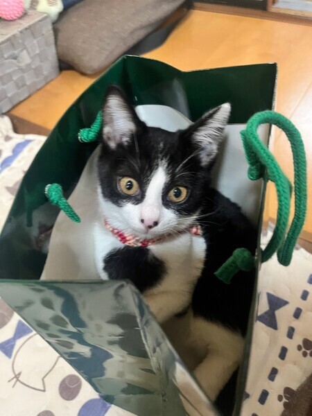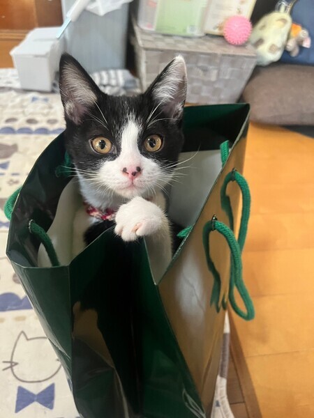 | 特徴(性格など) | 黒白の、ちょっと黒の多い迫力ある顔立ちのねね様、女の子です。 弟分の良いお姉ちゃんをしながら、先輩猫のかわいい妹も出来てます。 |
