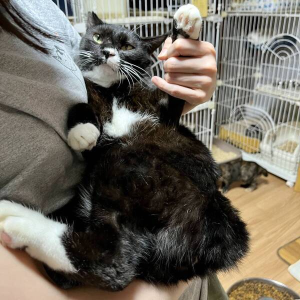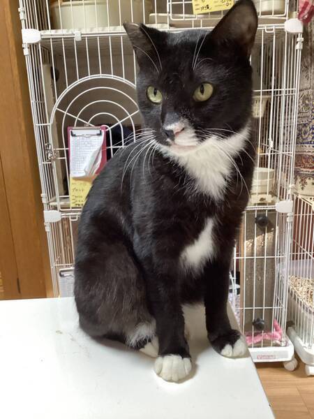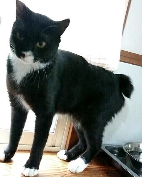 | 特徴(性格など) | ◆ブラックホワイトくん 少しビビりのスリゴロ黒白男子 ○栃木県内にて、TNR予定でしたが人馴れしていたため保護されました。 ○推定2歳未満くらい(2022年9月時点。正確な年齢は不明です)の黒白柄の男の子です。 ○手袋・靴下のように手足の先が白くなったタキシード様の黒白柄です。鼻から口元の柄が左右非対称なところがチャームポイントです。 ○尻尾は短く丸まっていて、うさぎのようです。 ○人慣れしているスリゴロさんです。 ○甘えん坊で人のあとをくっついてくるストーカー気質なところがあります。 ○抱っこ出来ます。 ○ブラッシング大好きです。 ○FIP(猫伝染性腹膜炎)を発症しましたが、治療後寛解しています。 ★ワクチン1回接種済み、不妊手術済み。 ★猫エイズ、猫白血病ともに陰性。 ★FIP(猫伝染性腹膜炎)を発症しましたが、治療後寛解しています。 ☆単身のかたはご相談ください。 ★★Zoomアプリを使用して、リモートお見合いを設定することも可能です。まずはお申込みください★★ |