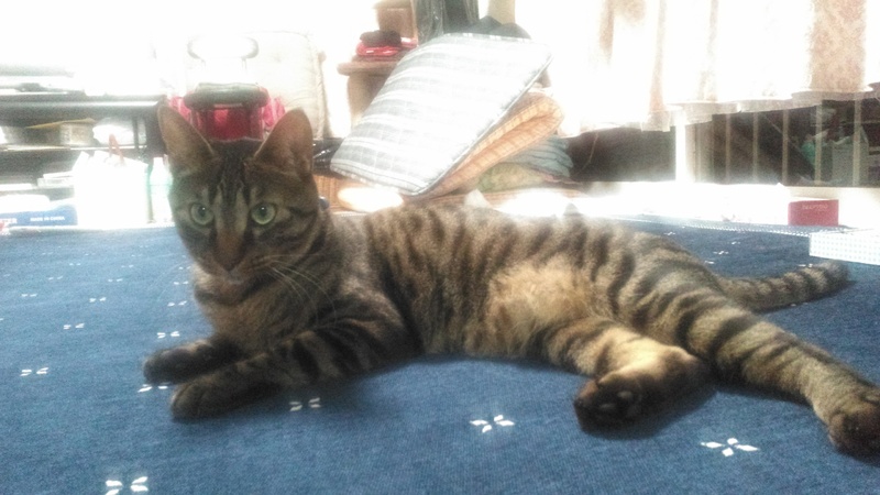 | 特徴(性格など) | 種類は、キジトラです。撫でると甘えてきますが、抱っこは苦手、少し人見知りします。 | ||