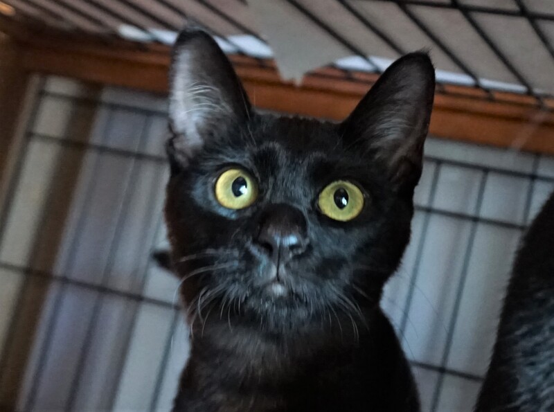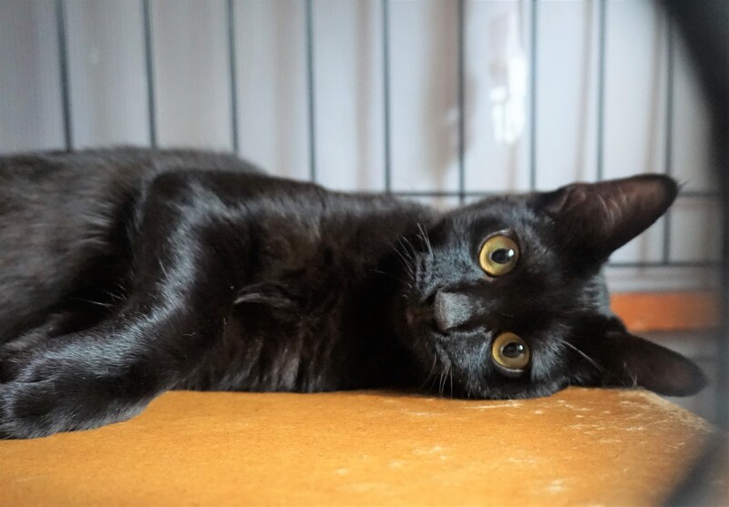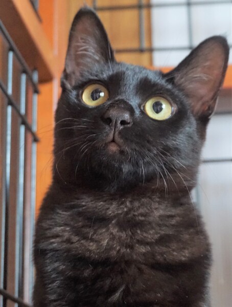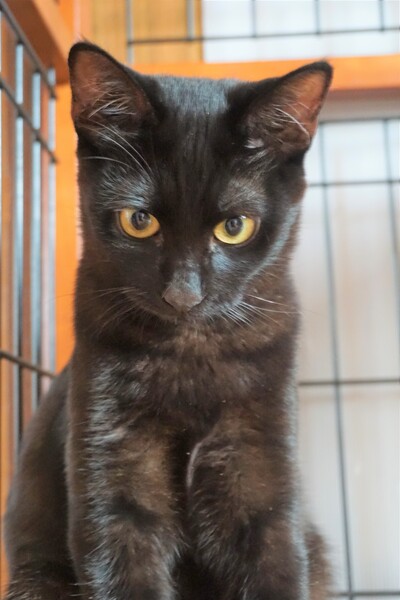 | 特徴(性格など) | 可愛いお顔の黒猫くんです。 真っ黒ではなく、少し茶色がかっていてお腹周りはうっすらシマシマがみえます。 お腹も少し白い部分があります。シッポはまっすぐです。 5匹兄弟の中で一番大きく、母猫の母乳を最近まで飲んでいました。 警戒心が強かったせいでなかなか捕獲できませんでしたが、保護して一か月、抱っこできるくらいに甘えたさんになってくれました。 |