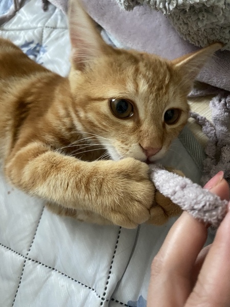 | 特徴(性格など) | 茶トラの人懐こくて甘えん坊の男の子です。 活発なところもあります。 |