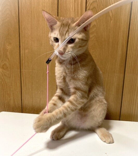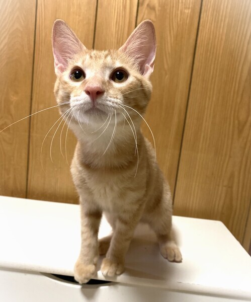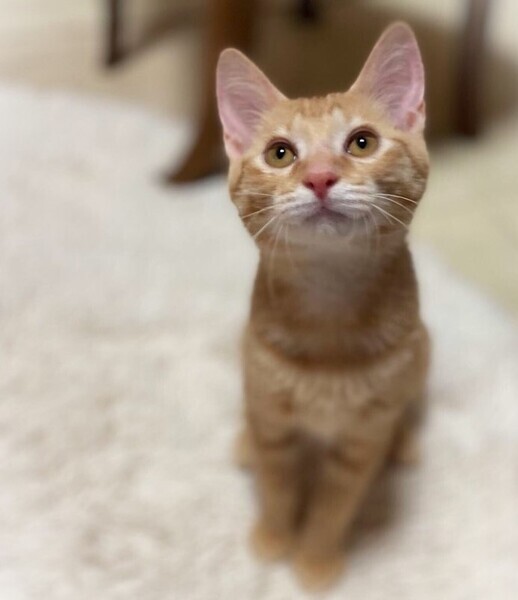 | 特徴(性格など) | 淡く明るい茶トラの男の子 環境に慣れるまで、少しい時間が必要です。 オモチャで遊ぶ事、抱っこされて膝の上で撫でられる事が大好き 眠たくなると人のお腹か胸の上に乗りながらうとうとします。 |