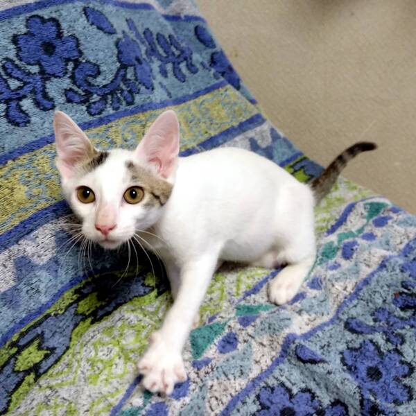 | 特徴(性格など) | 白地にきじ柄が可愛いイッチー。 男の子らしいどっしりとした体格をしています。 5兄妹でしたが、今はイッチーともう1頭男の子が残っています。 動物愛護センターから受け入れた子ですので、人間は母親と思っているのではないでしょうか?よく馴れています。 |