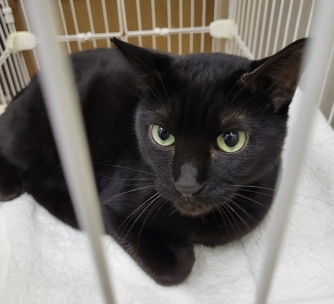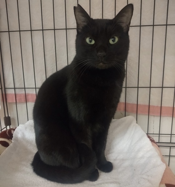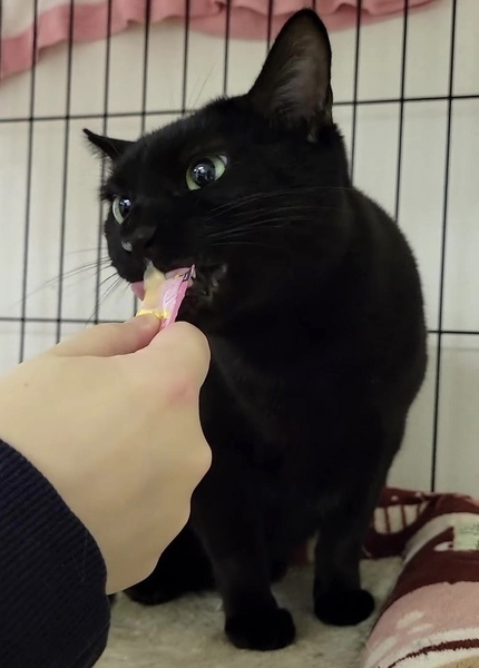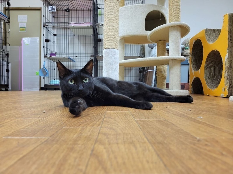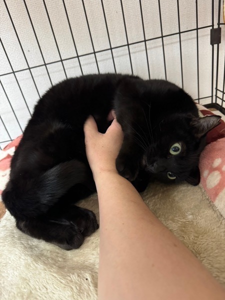 | 特徴(性格など) | 2018.9.6生まれ(推定) 毛色:黒 真っ黒つやつやな毛並みの男の子。 チャームポイントは、美しいグリーンの瞳と、 人が近づくとスコティッシュのようにとじてしまうお耳。 とっても怖がりさんなので、基本的なご挨拶は『シャー!』な一幸ですが、 最近では美味しいおやつに釣られて、ナデナデさせてくれることも増えてきました。 猫が大好きな一幸のマイブームはお宅訪問。 フリータイムには他の猫さんケージへ遊びに行っています♪ まだまだ人なれ修行中の一幸をゆっくり見守ってくれる里親さま募集中です★彡 |
