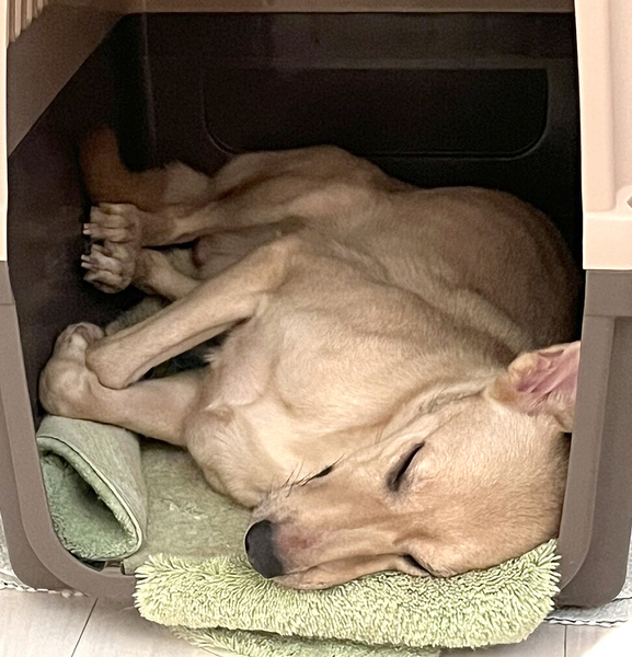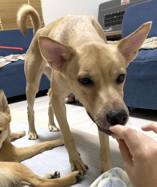 | 特徴(性格など) | <性格> ・慎重、恐がりです。ジェジェがフリーの状態で撫でたり、触ることはまだできません。クレートの中では、撫でたり、触ることができます。 ・人間が動かず床に寝ている状態だと、顔を近づけてきて匂いを嗅いだり、顔や手を舐めたりします。 ・クレートの中で爪切りや、シャワーをしていますが、口は出たことがなく、我慢強い子です。 ・預かり宅の先住犬とは仲良く遊んでおり、犬同士のコミュニケーションはとても上手です。ジェジェの性格を考えると、先住犬がいるご家庭が望ましいです。 ・よく観察し、自分で考えることができる子だと思います。 ・本当の性格は活発で、甘えん坊だと思います。まだ、人間こわい>甘えたい、になっており、なかなか殻をやぶることができません。 じっくりじっくり、ジェジェの性格を見つめて付き合ってくださる方が望ましいです。 <注意事項> ・ジェジェが行きたい方向に人間と鉢合わせたとき、人間の対応方法を間違えるとパニックになり、おしっこ、肛門腺をまき散らすことがあります。 <その他> ・人が同じ空間にいても、寝っ転がったり、落ち着けるようになりました。預かり宅では、みんなで同じ寝室で寝ています。 ・お散歩練習中です。貸し切りラン内にて、お外デビューはしました。楽しそうに匂いを嗅いだり、同居犬と一緒に走り回っていました。 ・体重15㎏ ・フィラリア(-) ・避妊手術・未(ヒートが終わり次第、手術予定) ・健康状態:良好です。体質なのか、食べてもあまり太らず細身です。 |