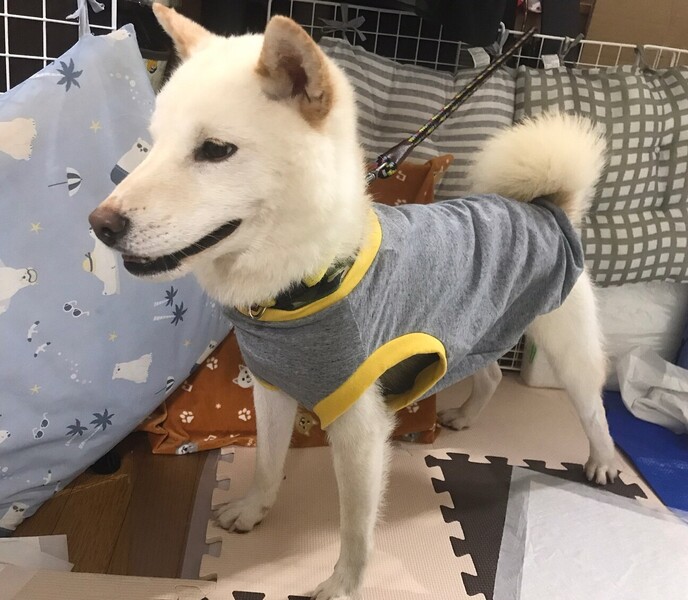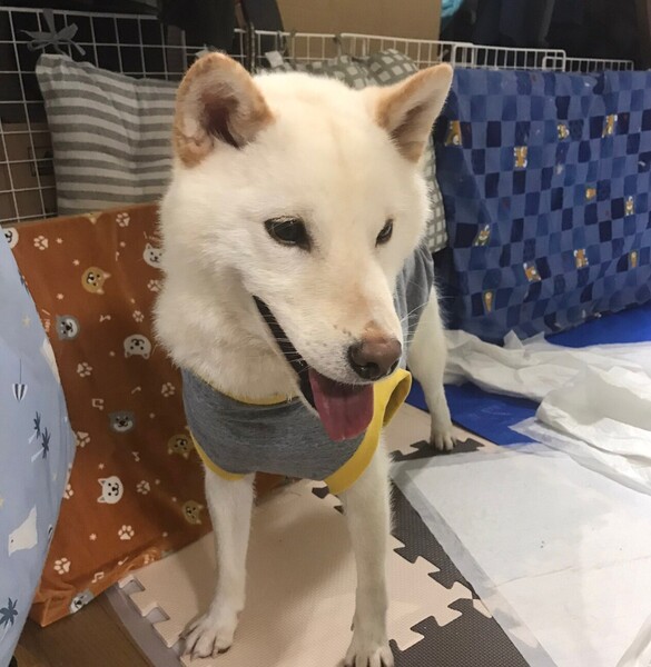 | 特徴(性格など) | 白柴風の見た目がかわいいコマメくんです。 人が大好きでなつっこく、好奇心旺盛で遊んで欲しくて堪らない子です。 遊び方がまだ下手なので甘噛み込みでじゃれてきます(まだ加減が下手です)。 歯の状態から推定5~6歳と言われていますが、行動がとても若く感じます。 気質的には柴犬気質だと思います。 現在何も教えていませんが、トイレは外でしています。 ガリガリに痩せ、適正体重の三分の一を失うほどの空腹状態だったため、ごはんやおやつに対する執着がまだ強いです。 撫でて欲しくてどこを触ってもいいよ!という感じですが、お散歩後の足拭きは苦手で、お口で抵抗してくるので今は二人で抱き上げて対応しています。 足拭きや躾などは、信頼関係が出来てからでも十分覚えてくれると思います。 また、お散歩の経験がないと感じました。 爪も伸び放題だったため上手く歩けなく、体を掻くことも出来ず、切ってあげてからやっと楽しくお散歩できています。 放置されていたのか体に合わないものを食べていたのか、とても毛が抜けて薄い部分がありますが、きちんとしたごはんで栄養を取れれば綺麗になると思います。 今現在は低体重の為、朝昼夕夜とおやつ、カリカリメインでウエットフード少しで何でもよく食べます、お散歩は朝夕寝る前少しの三回しています。 落ち着くまで、ごはんはケージで一人でそっとしておく形で食べさせることにしています。 好き!楽しい!嬉しい!、ご飯早く欲しい!違う子の分も欲しい!という感情が伝わってくる子です。 色々な状態を考えると、人が大好きなのに触れ合いがものすごく少なかったと思い、こちらでは躾などは後回しにして、安心できる・楽しい・美味しいなどの当たり前の感情を取り戻すことを最優先にしています。 甘噛みもするので、基本お子様がいるご家庭はお断りの方向ですが、ご相談ください。 犬同士は相性次第ですが、元気な子の為シニアな先住だと疲れさせてしまうかもしれません。 〈健康状態〉 体重9kg(+5kgは増えそう) ワクチン済 フィラリア陰性 狂犬病ワクチン済 虫下し済 フィラリア予防薬開始しています。 マイクロチップ・去勢はこれからです。 |