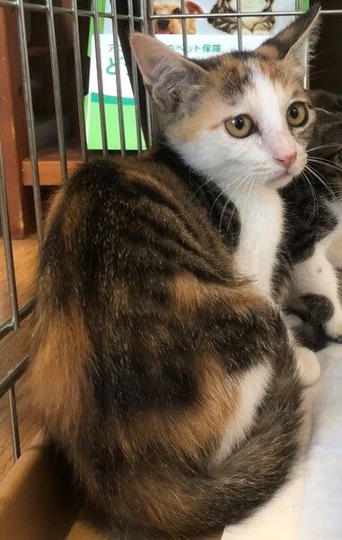 | 特徴(性格など) | 高齢の女性宅でご飯をあげていた猫が産みました。 4頭生まれたうちの1頭です。 臆病で、シャーっと防衛しますが、強く引っかかれたりすることはありません。 撫でさせますので、慣れるようになると思います。 エイズ白血病は、兄弟の他の1頭だけしたところ陰性でした。 (陰性の可能性が高いですが、確実ではありません) |